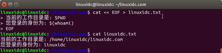 linuxidc@linuxidc:~/linuxidc.com$ cat << EOF