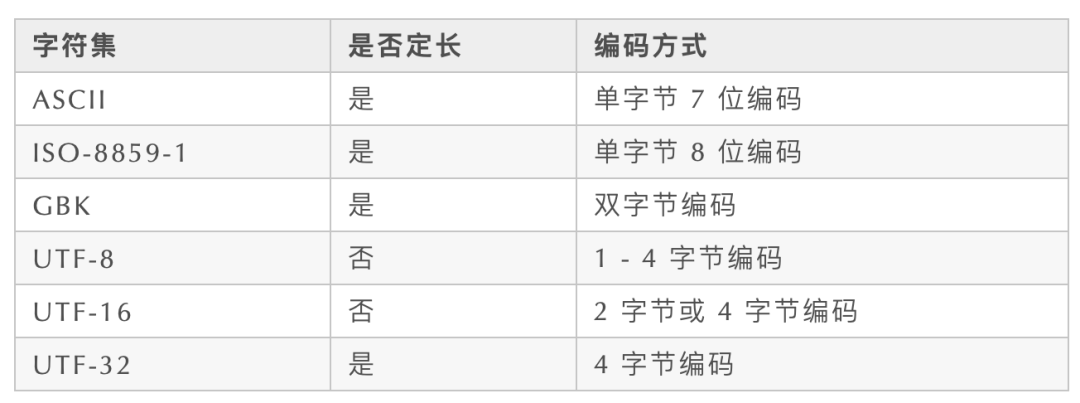 ASCII(American Standard Code for Information Interchange) 。自从 ASCII 编码后,每个国家、国际组织都研究了一套自己的字符集,比如 ISO-8859-1、GBK 等。国际标准化组织(ISO) 指定了统一的字符标准 - Unicode 编码,它容纳了几乎所有的字符编码。下面是一些常见的字符编码