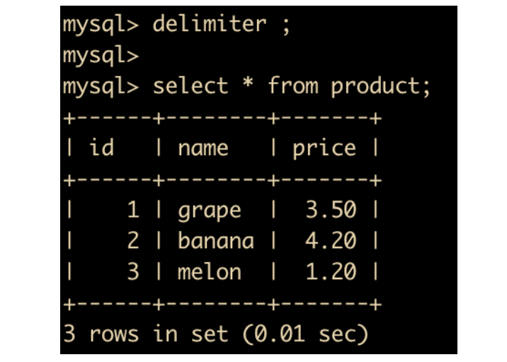 ; 但是我们却没有看到执行结果。下面我们使用delimiter ;