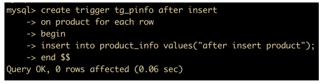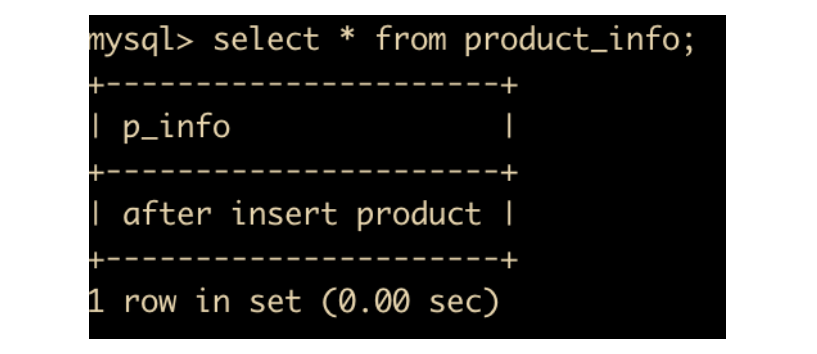 for each now 表示任何一条记录上的操作都会触发触发器。create table product_info(p_info varchar(20));