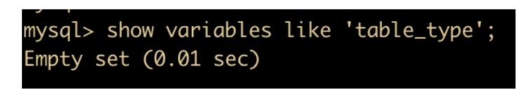 default-table-type,能够查看当前的存储引擎show variables like 'table_type';