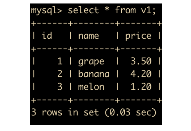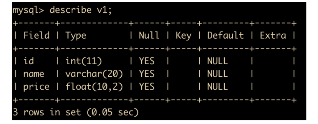 create view 来创建视图product 表,有三个字段,id,name,price,下面是建表语句create table product(id int(11),name varchar(20),price float(10,2));