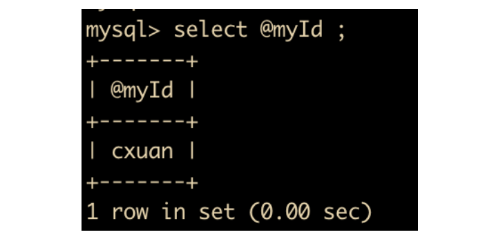 会话变量实现的,可以暂存,用户变量与连接有关,也就是说一个客户端定义的变量不能被其他客户端使用看到。当客户端退出时,链接会自动释放。我们可以使用 set 语句设置一个变量set @myId = "cxuan";