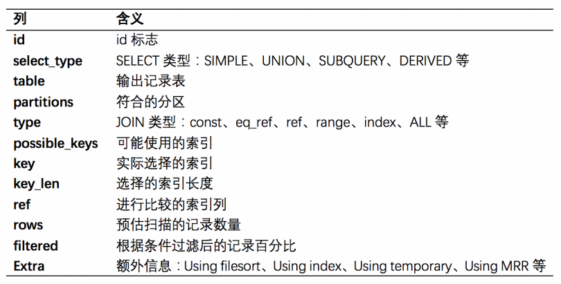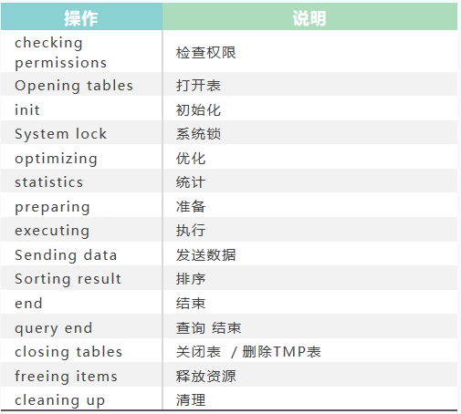 执行之前,要了解下显示字段代表意义: