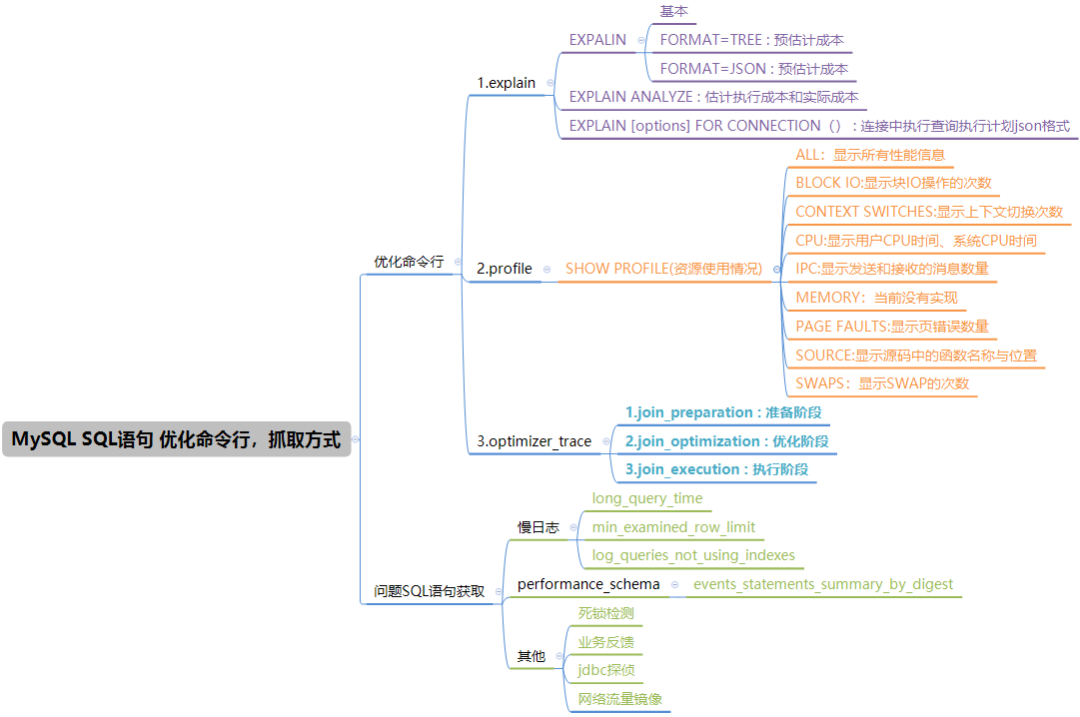 EXPLAIN ANALYZE; PROFILE; OPTIMIZER_TRACE;