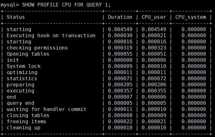 SHOW PROFILE CPU FOR QUERY 1;