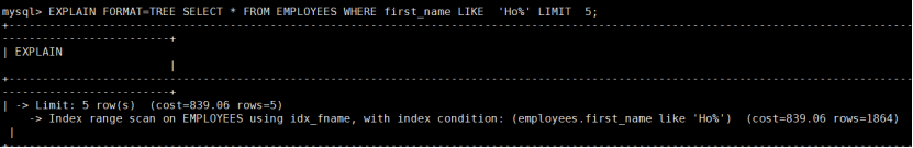 EXPLAINEXPLAIN FORMAT=TREEEXPLAIN FORMAT=JSONEXPLAIN ANALYZEEXPLAIN [options] FOR CONNECTION