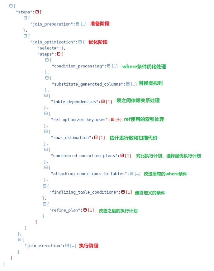 1.SET OPTIMIZER_TRACE="enabled=on";2.执行 sql 语句3. SELECT * FROM INFORMATION_SCHEMA.OPTIMIZER_TRACE limit 30 \G;4.关闭 SET OPTIMIZER_TRACE="enabled=off";